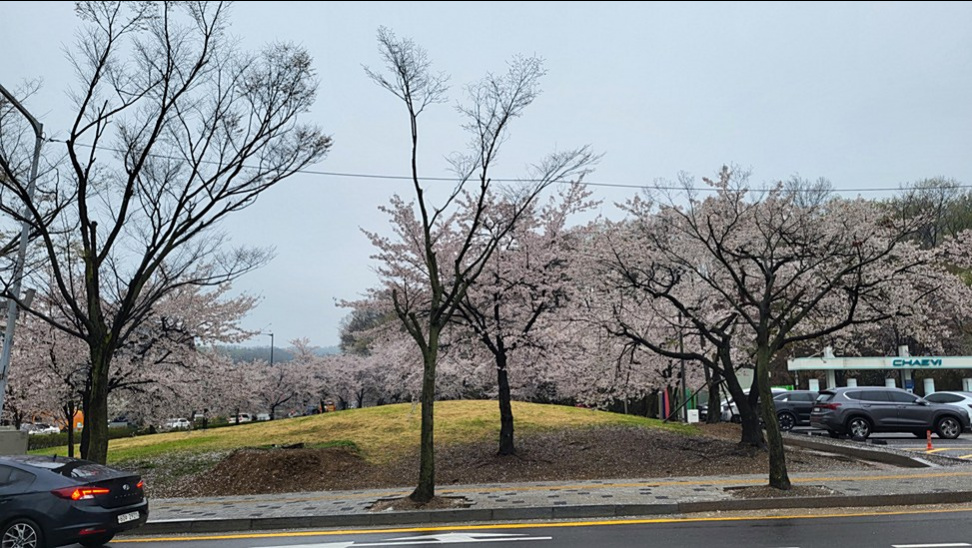 2일후 팀장 얼굴을 보고 싶어 아름채 식사를 하러 가는 길에 시청에 들렸으나 비 맞은 벛꽃만 보고 팀장은 금번 이재명 정부에서 전쟁지원금 회의차 만나지 못하고 돌아 왔다.
