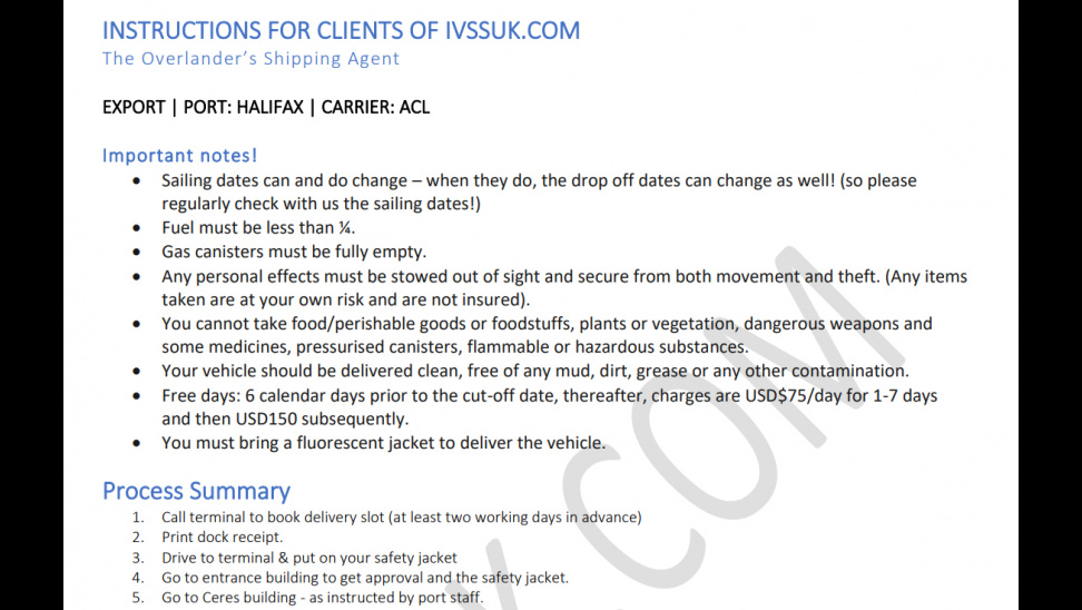 • IVSS에서 Halifax 항구에 차를 넘기위한 컷오프 등 설명