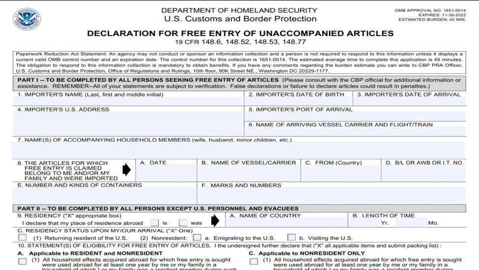 • CBP-3299 자동차일시수입허가 신청서 (미국)