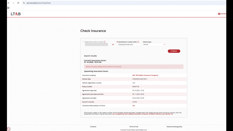 • Latvia에서 발행한 3개월 짜리 보험증서