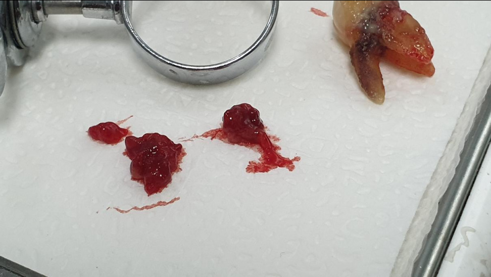 이빨 빠진 곳에서 썩어 가는 부위가 한가득 나왔다. 이빨도 우쩨 뿌리가 3가닥이나 되는지..